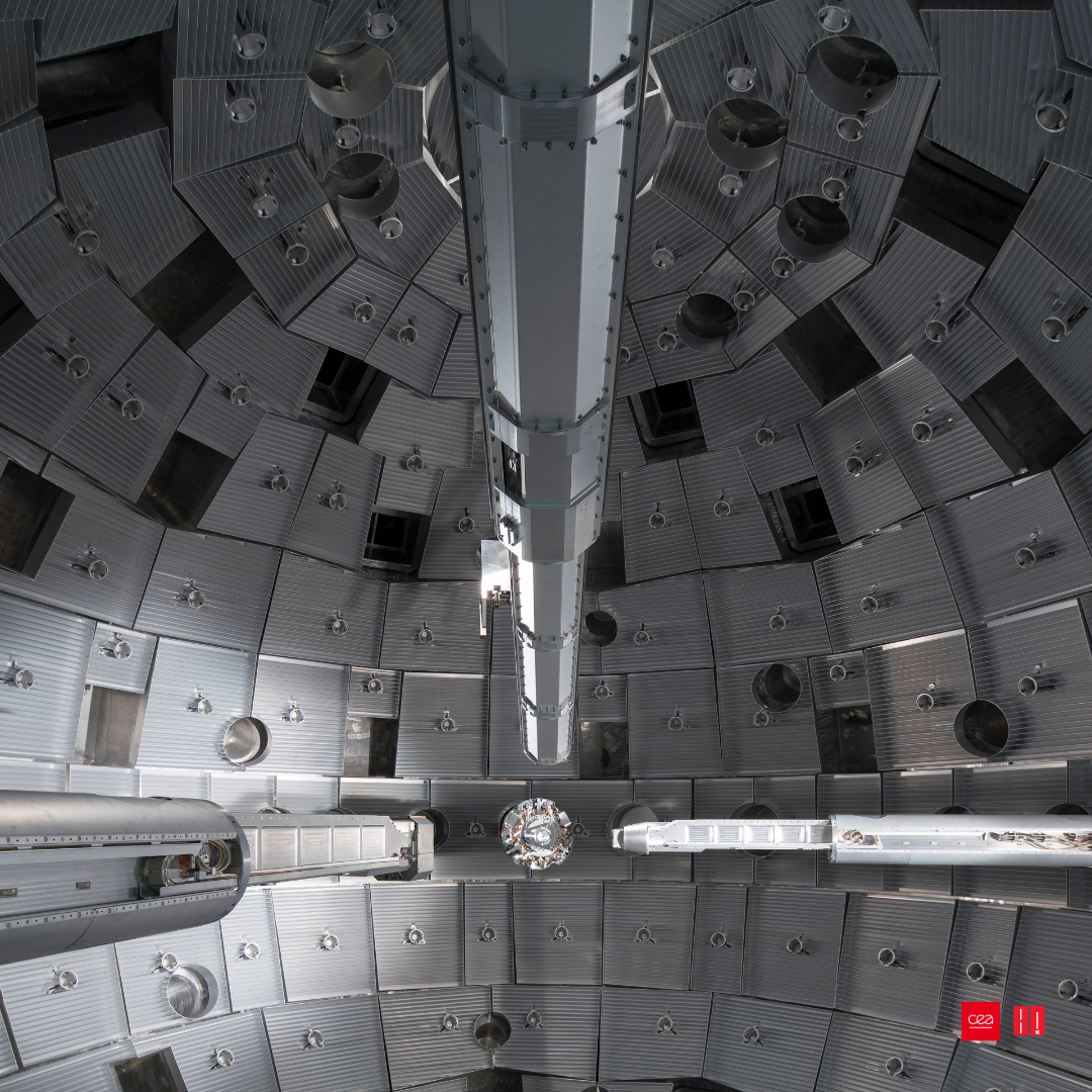 Ces faisceaux convergent sur une cible millimétrique placée au centre d’une chambre d’expériences de 10 mètres de diamètre.