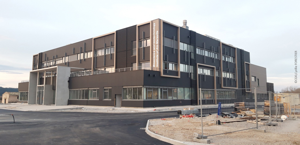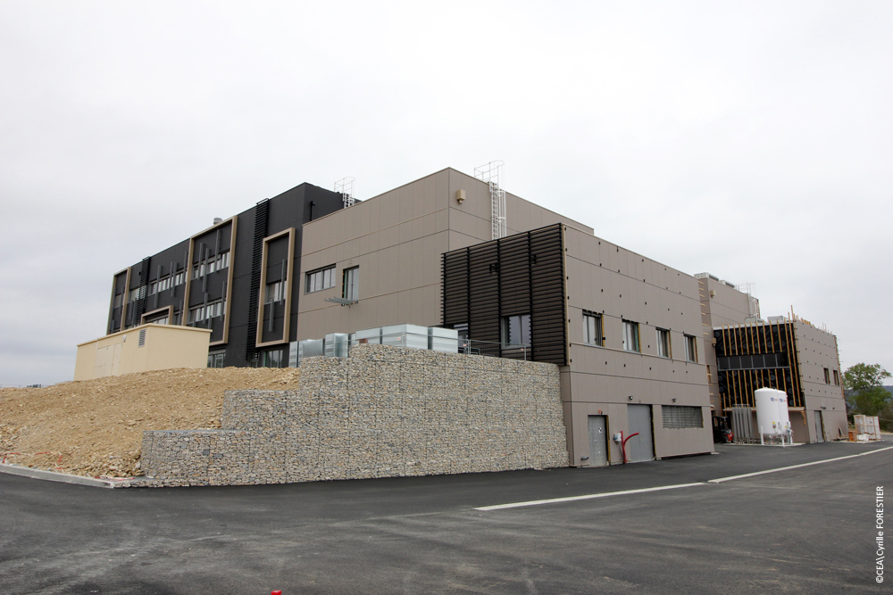 Le bâtiment de recherche, vu depuis sa façade Sud avec l’entrée principale à gauche - Crédit photo : Cyrille FORESTIER, CEA