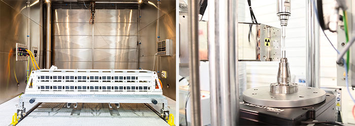 - d'essais inédits couplant fatigue et corrosion, et de suivi par imagerie par rayons X de pièces de grandes dimensions, se focalisant sur la durabilité des matériaux (en partenariat avec les Arts et Métiers d'Angers).