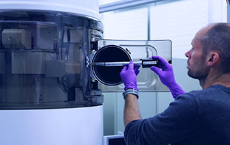« La FIB est la seule technique qui permette de localiser une zone précise sur une plaque en évitant toute déformation involontaire du matériau », explique Audrey Jannaud, spécialiste de la préparation des échantillons.