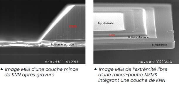 Concernant le KNN, l’ensemble du processus de fabrication en 200 mm peut se dérouler dans les salles blanches du CEA-Leti à partir de matériau fourni par Sumitomo Chemical. L’institut, qui optimise actuellement son procédé de dépôt d’AlScN, disposera bientôt de ses propres équipements de dépôt de KNN, élargissant ainsi la gamme des composants pouvant être fabriqués sur place.