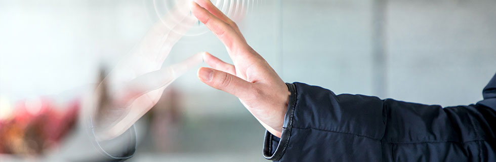 Une interface haptique permet à l'utilisateur d'interagir avec un objet par le sens du toucher. Dans ce démonstrateur, des actionneurs piézoélectriques sont intégrés collectivement sur un substrat flexible en polymère, en utilisant la technologie « Piezo-in-Flex » brevetée au CEA-Leti.