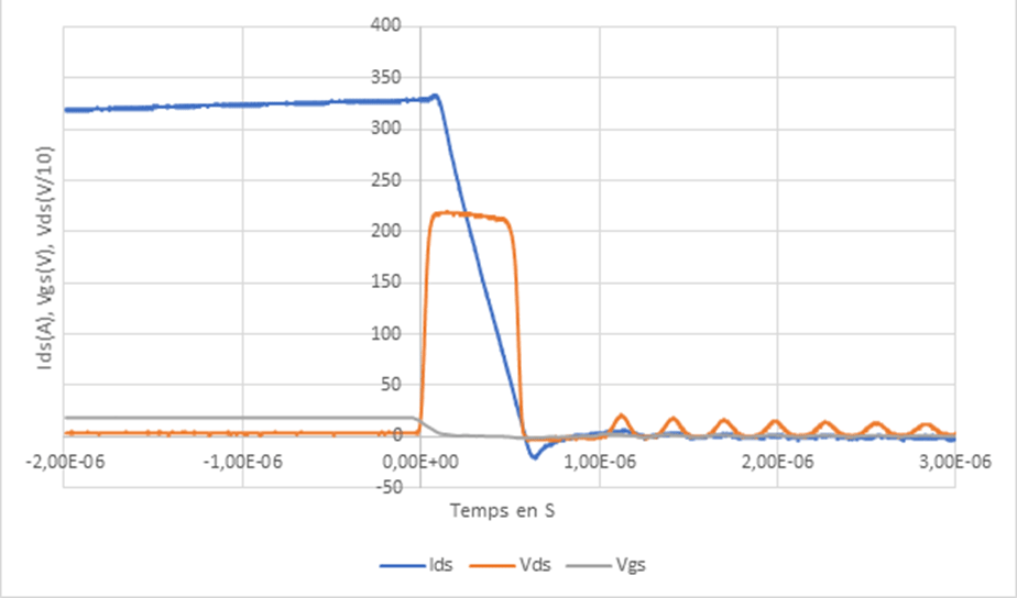 Légende : Courant de 333A en écrêtage par avalanche à 2180V