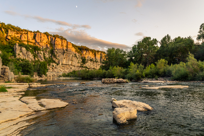 La partie la plus étroite de ce couloir, la moyenne vallée du Rhône, est bordée sur sa rive droite par une série de bas plateaux, séparés par des vallées transversales, adjacentes aux contreforts du Massif Central. C'est dans cette région que sont situés les principaux sites – grottes et abris sous roches – connus pour documenter des occupations humaines du Paléolithique moyen.