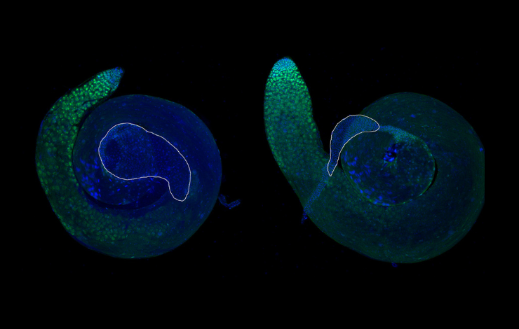 Pour comprendre le rôle de cette enzyme, une équipe du CEA-Irig a utilisé la mouche Drosophile comme modèle et la technique innovante CRISPR/Cas9, qui permet de modifier précisément le génome. Ils ont ainsi produit une version mutée d'USP36 dépourvue d'activité enzymatique : USP36 est toujours présente dans la cellule, mais elle ne peut plus accomplir sa fonction d'enzyme, c'est-à-dire retirer l'ubiquitine des autres protéines.