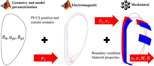 Les derniers développements sur les supraconducteurs à haute température (SHT) rendent désormais possible des champs magnétiques supérieurs à 20 T, un progrès qui permet de réduire la taille des enceintes de confinement du plasma tout en opérant à des puissances de fusion identiques ou plus élevées. Ces gains de puissance supposent cependant des efforts électromagnétiques considérables dans les aimants qui doivent être calculés.