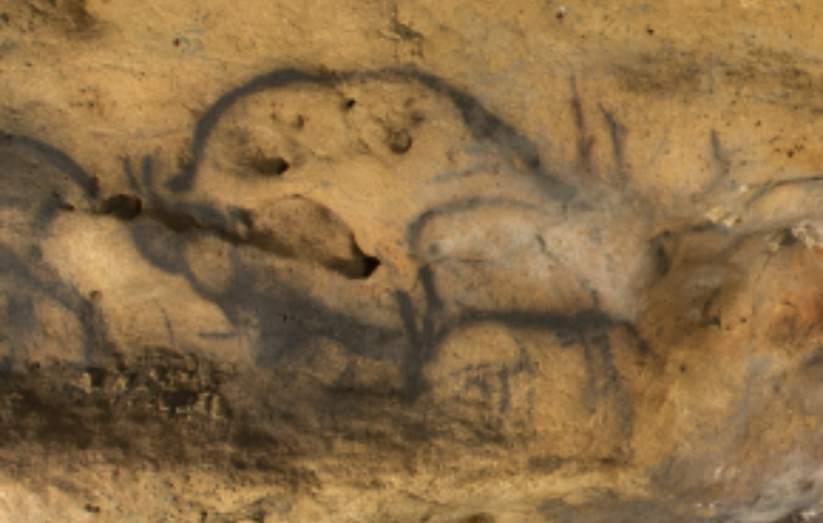 Les scientifiques se sont intéressés à la composition chimique de deux dessins noirs, représentant un bison et un masque, en ayant recours à la microspectrométrie Raman et à l'imagerie hyperspectrale*. Ces méthodes non-invasives ont permis de révéler des traces de charbon de bois dans les pigments noirs. La présence uniforme de charbon sur l'ensemble des tracés noirs des figures a exclu l'hypothèse d'une contamination liée aux graffitis ou à l'activité touristique dans la grotte.
