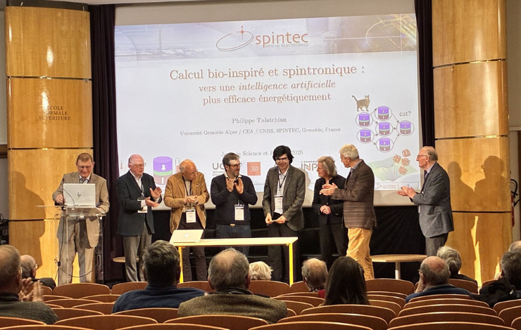 Les travaux récompensés portent sur le développement de dispositifs spintroniques innovants, en particulier à base de jonctions tunnel magnétiques, pour le calcul inspiré du cerveau et l’intelligence artificielle basse consommation. L’idée est d’exploiter directement certaines propriétés physiques naturelles de ces nano-composants, comme leur caractère non linéaire, leur dynamique rapide et leur sensibilité aux fluctuations, afin de réaliser des fonctions de calcul de manière beaucoup plus efficace énergétiquement que dans les architectures numériques conventionnelles.