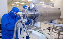 Il a fallu cinq ans de développement pour concevoir et réaliser le système complexe cryogénique, très sensible, qu'est un cryomodule de ESS (European Spallation Source). Long de plus de six mètres, il comprend quatre cavités supraconductrices elliptiques fonctionnant à 2 kelvins, qui sont alimentées chacune par un coupleur radiofréquence, capable de transmettre une puissance crête supérieure à un mégawatt.