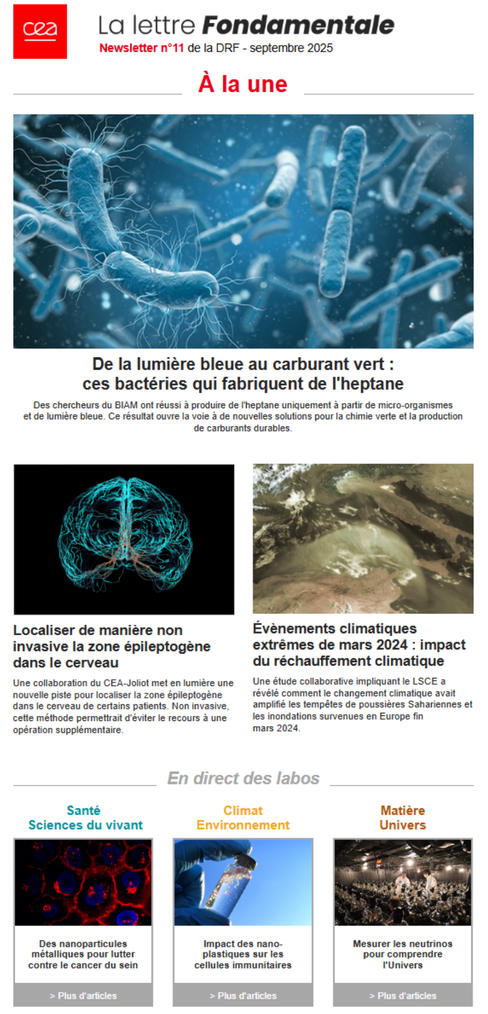 Vous voulez participer au développement de la recherche dans le domaine de la santé, des bioénergies, des énergies,de la physique, de la chimie, des sciences du vivant ? Vous souhaitez un parcours professionnel motivant dans une communauté scientifique pluridisciplinaire ? Rejoignez les équipes de la DRF, ouvertes à la fois sur la recherche internationale et le monde industriel.