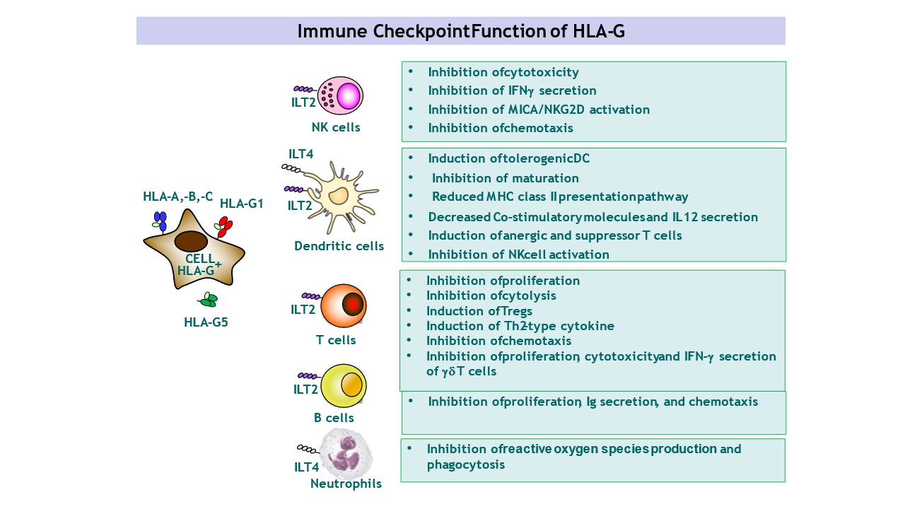 L'objectif de ces recherches est de passer à des applications cliniques au niveau (i) thérapeutique, en favorisant la tolérance médiée par HLA-G comme stratégie anti-rejet de greffe, ou à l'inverse en bloquant cette tolérance par le biais d'anticorps anti-HLA-G pour le traitement antitumoral, et (ii) d'identifier de nouveaux marqueurs pour le pronostic et l'efficacité du traitement.