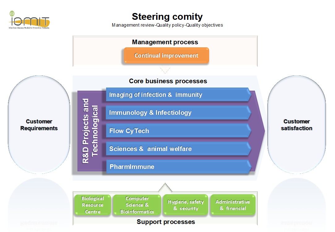In 2012, the IDMIT Department received funding from the French Investments Program (PIA) for the creation of the National Infrastructure for Biology and Health, IDMIT, dedicated to the “Modeling of Infectious Diseases and Innovative Therapies.” This National Infrastructure draws on the expertise and knowledge of its internationally recognized founding institutions: CEA, Institut Pasteur, Université Paris-Saclay, and INSERM. All partners are global leaders in the field of host–pathogen interactions, contributing complementary expertise that has resulted in a preclinical entity unique in Europe for the study of human infectious diseases.