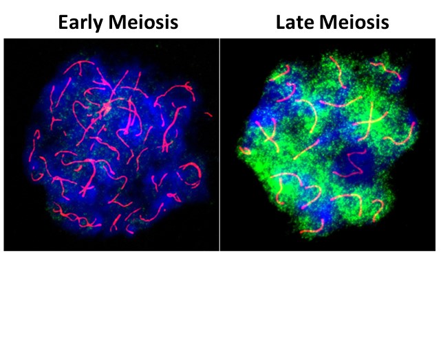 The researchers observed a widespread reduction in gene activity when cells enter meiosis, a phenomenon called early meiotic low transcription (EMLT), which also appears to be regulated by Stra8. Unlike MSCI, EMLT affects the entire genome. Surprisingly, it occurs before the formation/repair of DNA breaks at the onset of meiosis and is not influenced by these events. This challenges the idea that DNA breaks govern transcriptional activity at the beginning of meiosis.