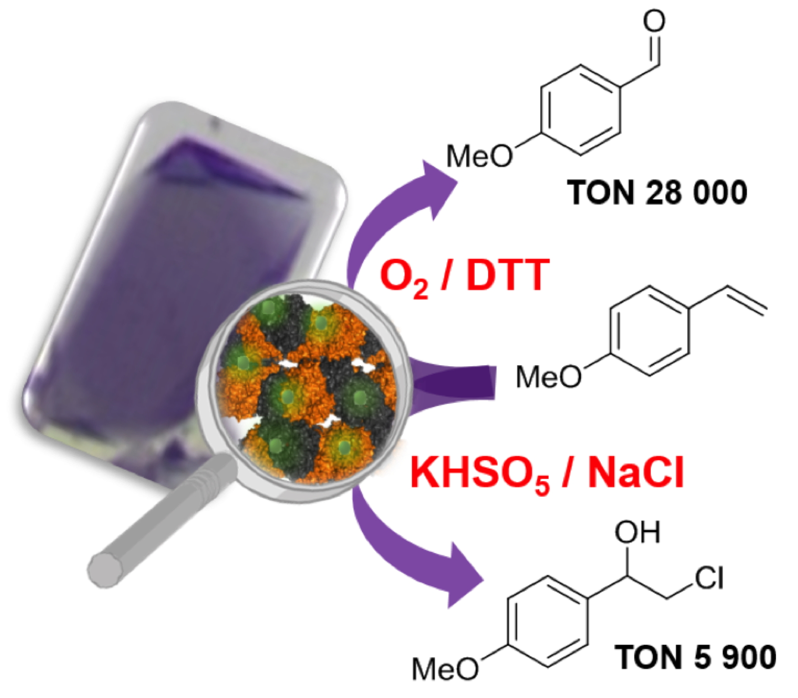 Les chercheurs du laboratoire Chimie et Biologie des Métaux travaillent sur des métalloenzymes artificielles dont l'une est un hydride constitué de la protéine NikA et de complexes de fer ou de ruthénium. Dans le but d'en améliorer les propriétés, ils sont parvenus à stabiliser les cristaux de NikA par réticulation. Le catalyseur hybride solide résultant permet la stabilisation du site catalytique artificiel au sein du cristal de protéine.
