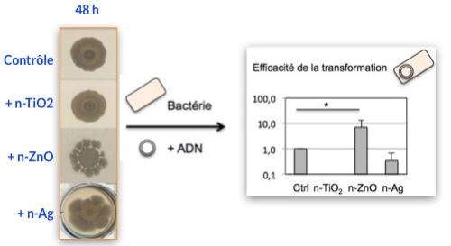 Les chercheurs du laboratoire Chimie et Biologie des Métaux montrent qu'en fonction de la nature de certaines nanoparticules, Bacillus subtilis est en mesure de voir sa compétence modifiée.