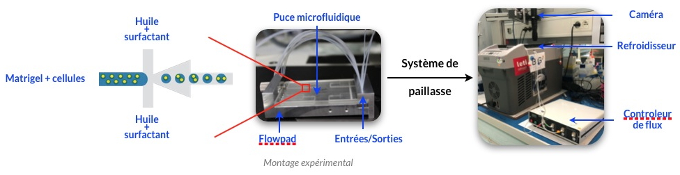 Dans le cadre de leurs travaux, les chercheurs de l’équipeBiomicrotechnologie et Génomique Fonctionnelle (Biomics) du laboratoire Biologie à Grande Échelle ont développé une approche innovante pour parvenir à exprimer des transgènes dans des organoïdes prostatiques ou mammaires en combinant l’encapsulation par microfluidique de cellules uniques dans des microbilles de Matrigel et l’électroporation d’acides nucléiques
