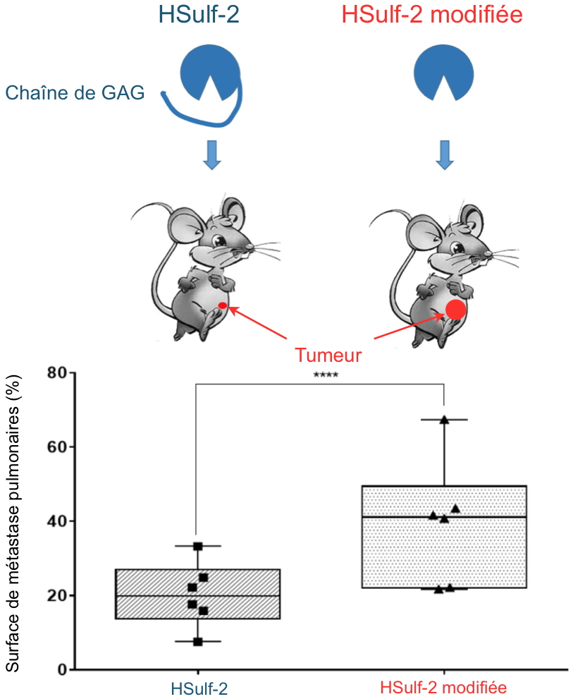 in vivo de xénogreffe de cancer chez la souris. En utilisant un mutant de HSulf-2 dépourvu de sa chaîne GAG, les chercheurs ont montré un accroissement significatif de l’activité de l’enzyme