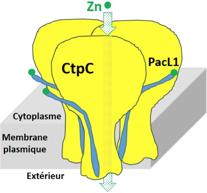 1B, CtpC, dont le rôle est d’exporter le zinc en excès dans son cytoplasme.
