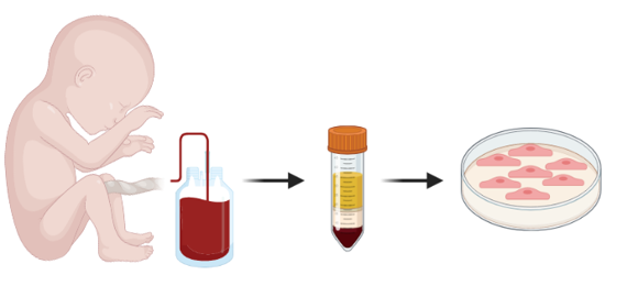 Figure 1 : prélèvement des cellules du sang de cordon ombilical d’un nouveau-né dont la mère ou le père est atteint de la maladie de Rendu-Osler. Credit CEA