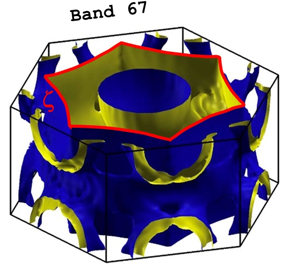 Figure : Structure des états quantiques électroniques du supraconducteur de kagomé CsV3Sb5 selon les calculs théoriques. Le tracé en rouge correspond à la plus grande orbite électronique.