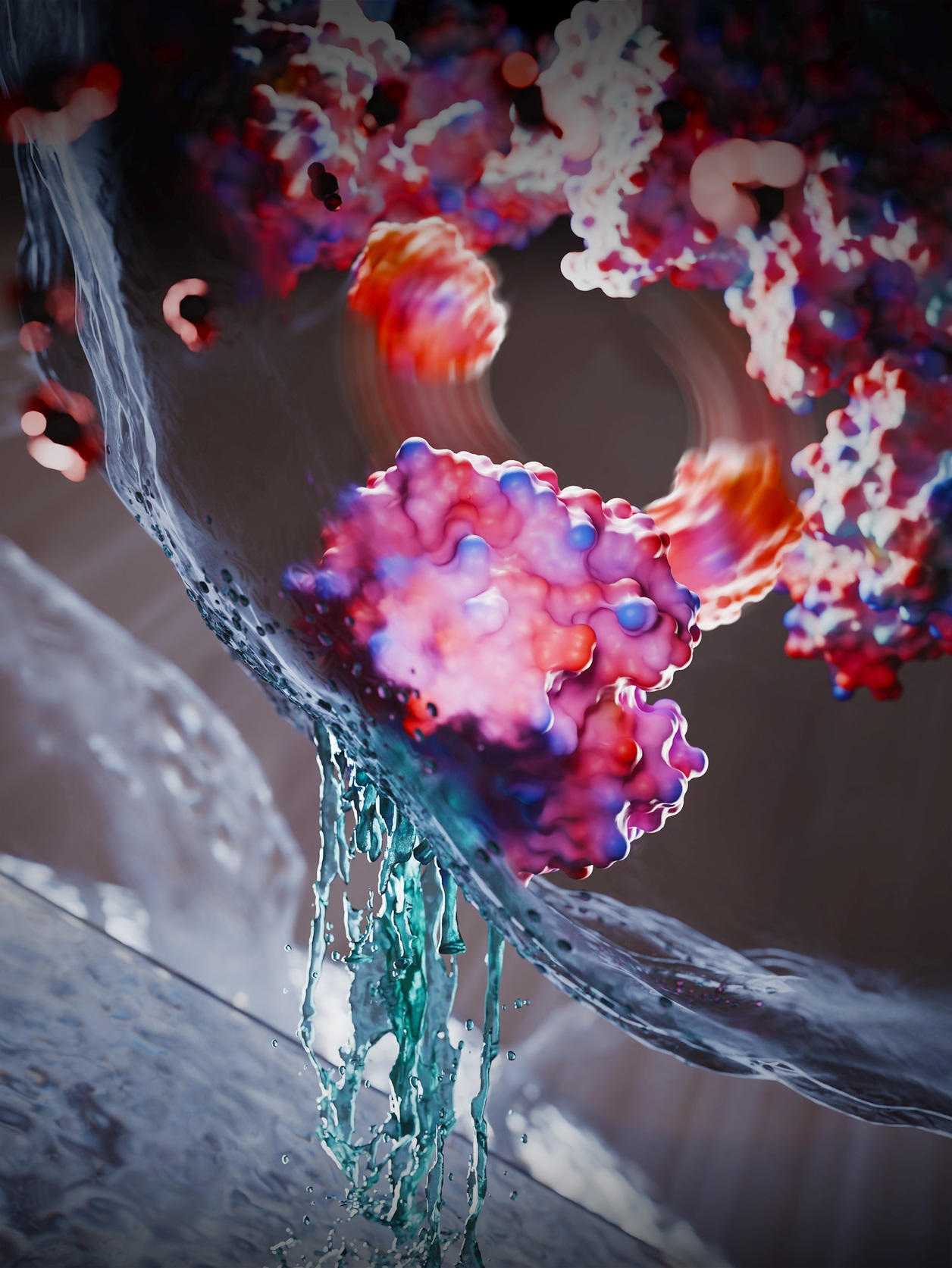 via le cycle de la ferrédoxine alimente l’enzyme AFOR, essentielle à la production d’éthanol et à la formation de biocarburants. Illustration suggérée pour la couverture du journal Nature Chemical Biology. © Benjamin Large / sceyence illustrations