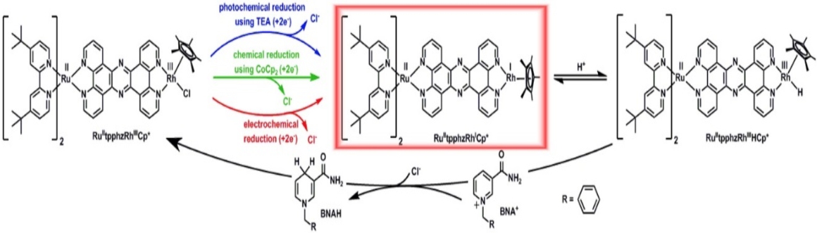 Figure: Substrate scope of photocatalytic activity of Ru(tpphz)RhCp*, products are highlighted in red