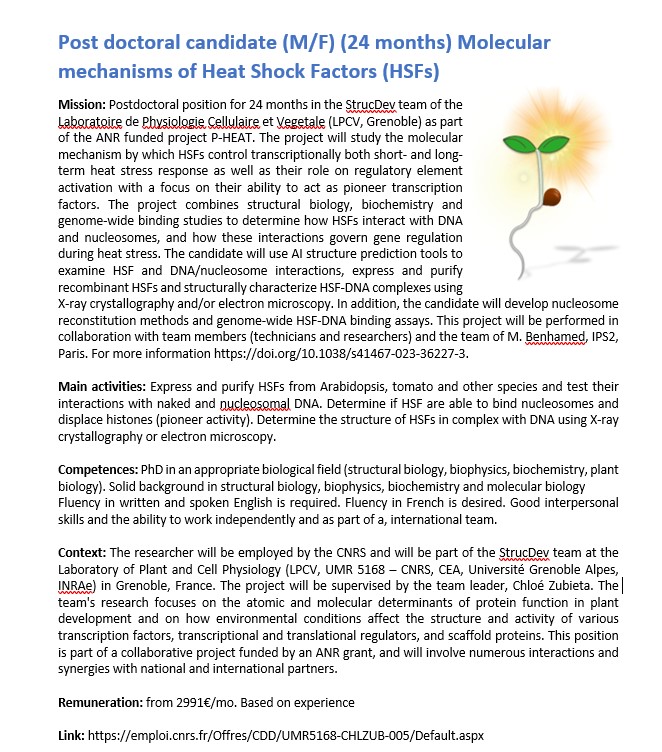 You are here : Home > The institute > Molecular mechanisms of Heat Shock Factors (HSFs)