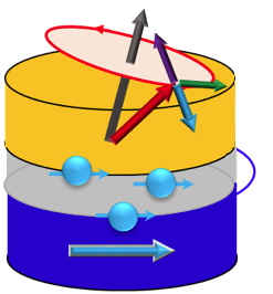 Figure: Schematic diagram of a Spin-Torque Nano-Oscillator (STNO). The injection of a current, polarized by the fixed layer (blue), puts in self-oscillation the magnetization of the free layer (yellow). STNOs are stacks of ferromagnetic layers a few nanometers thick and a few tens of nanometers in diameter. This is the first time that researchers have demonstrated experimentally (see inset for more information) that the use of such STNOs in spectrum analyzers can push the usual limits of scanning speeds. Researchers have also shown that it is possible to resolve multiple frequency components simultaneously or to track rapid changes in the frequency of a signal. This makes ultra-fast spectrum analyzers based on STNOs a very promising technology that opens up a new field of applications.