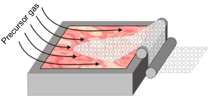 The synthesis of large, defect-free two-dimensional materials is a major challenge toward industrial applications (photovoltaics, semiconductors, etc.). Chemical vapor deposition (CVD) is to date the most promising method to produce large, high quality graphene sheets. However, polycrystalline copper generates defects in the graphene layer, and after cooling, the layer forms domains and wrinkles that significantly degrade its quality. The researchers are working to develop a new process on liquid metal catalysts under CVD growth conditions.