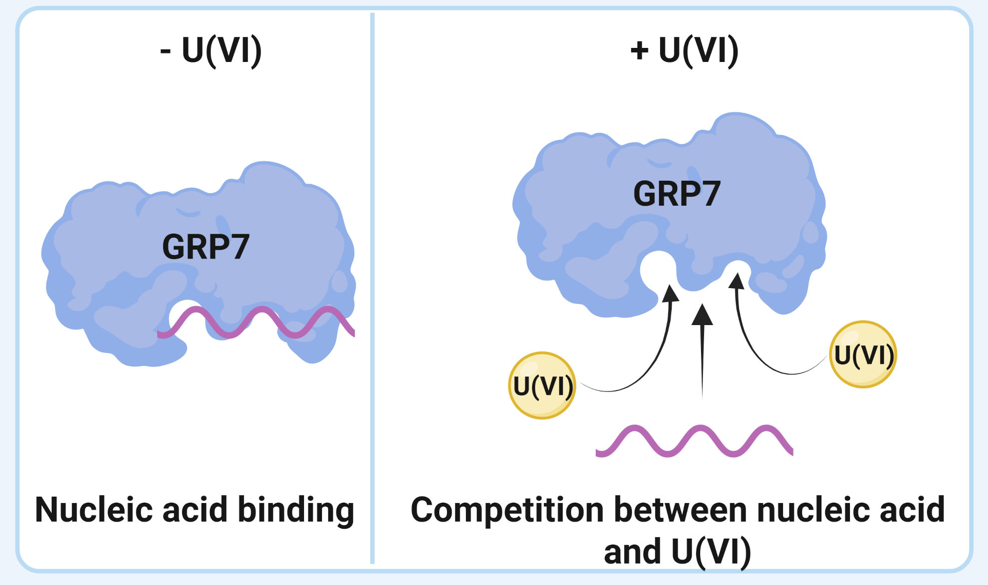 For the GRP7 protein, the study reveals that the ionised form of uranium U(VI) binds to two sites and interferes with RNA binding, thereby disrupting gene regulation mediated by this protein. This reveals a completely new mechanism of uranium toxicity in plants.