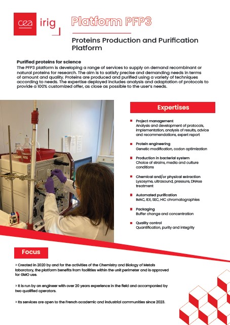 PFP3 platform is developing a range of services to supply recombinant or natural proteins for research on demand. The aim is to satisfy precise and demanding needs in terms of quantity and quality.