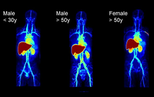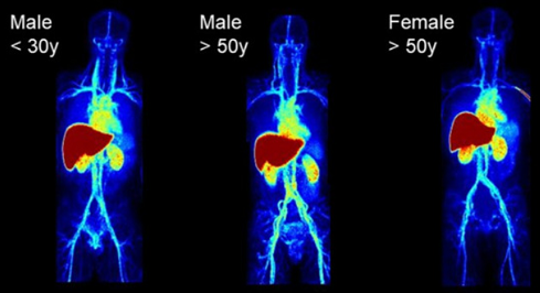 Afin d'explorer les différences dans la fonction OATP associées au sexe et au vieillissement, les chercheurs ont utilisé le 11C-glyburide dans des expériences de TEP-IRM dynamiques sur l'ensemble du corps (whole-body pharmacokinetic, WBPK) et ont comparé le WBPK chez des hommes et des femmes de plus de 50 ans en bonne santé. Les données précédemment obtenues chez les hommes de plus de 50 ans ont été comparées à celles obtenues chez des hommes plus jeunes (< 30 ans) à l'aide de la même méthode. La constante de transfert du sang vers le foie (kuptake) a été estimée afin de décrire la fonction OATP hépatique in vivo. Les données d'imagerie ont montré que l'exposition hépatique par le médicament radiomarqué était 42.6 ± 18.4% plus importante (P < 0.05) chez les femmes de plus de 50 ans que chez les hommes du même âge, avec des valeurs de kuptake plus élevées, sans impact sur l'exposition sanguine. Chez les hommes, ni l'exposition hépatique, ni l'exposition sanguine ne sont affectées par le vieillissement. La fonction OATP peut donc être à l'origine d'importantes différences liées au sexe dans l'exposition hépatique, différences non décelées par la pharmacocinétique sanguine conventionnelle.