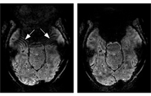 les artefacts en forme d'ondes, causés par le déphasage intra-voxel dans les zones où le champ magnétique est inhomogène.