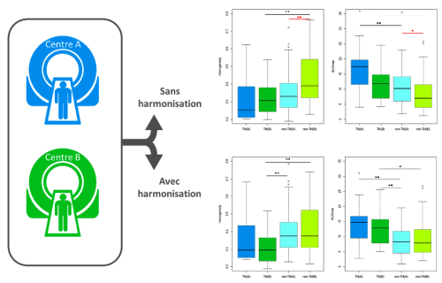 Les progrès en imagerie médicale permettent désormais d'extraire des informations dites « radiomiques » beaucoup plus riches que celles résultant de l'analyse visuelle par le radiologue ou le médecin nucléaire. Ces biomarqueurs radiomiques calculés à partir des images s'avèrent prometteurs pour la prédiction de la réponse aux traitements ou de la survie des patients en cancérologie. Toutefois, ils sont sensibles aux conditions d'acquisition des images. Ainsi, il est impossible d'analyser ensemble des images acquises dans différents centres du fait de la variabilité multicentrique. Pour cette même raison, un algorithme prédictif, élaboré à partir de biomarqueurs radiomiques mesurés sur les images acquises dans un centre, n'est pas performant sur les images acquises dans un autre centre.