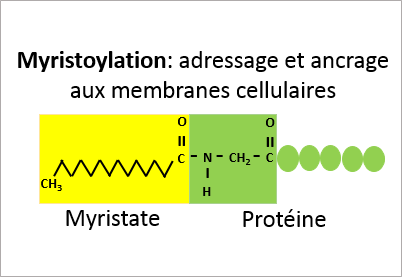 Ainsi, cette étude a identifié (i) le motif protéique reconnu pour être myristoylé et (ii) près de 600 protéines myristoylées chez l'homme et chez la plante modèle