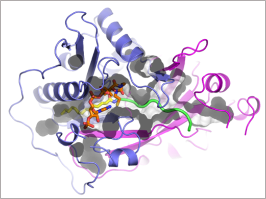 Arabidopsis thaliana. Pour cela, dans un premier temps, la résolution de la structure de l'enzyme effectuant la myristoylation, complexée à plusieurs cibles connues, a permis une première définition des séquences d'extrémités N-terminales reconnues par cette enzyme (Figure 2). Forts de ces informations, les chercheurs ont mis au point un test de criblage