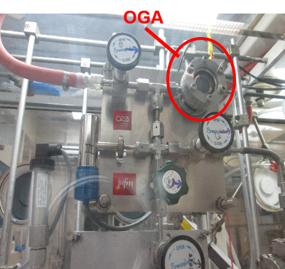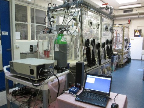 |  Figure 2 : Nouveau système de mesure OGA (Optical Gas Analysis) type sonde de Penning en boîte à gants © S.Feuillastre, S.Vartanian