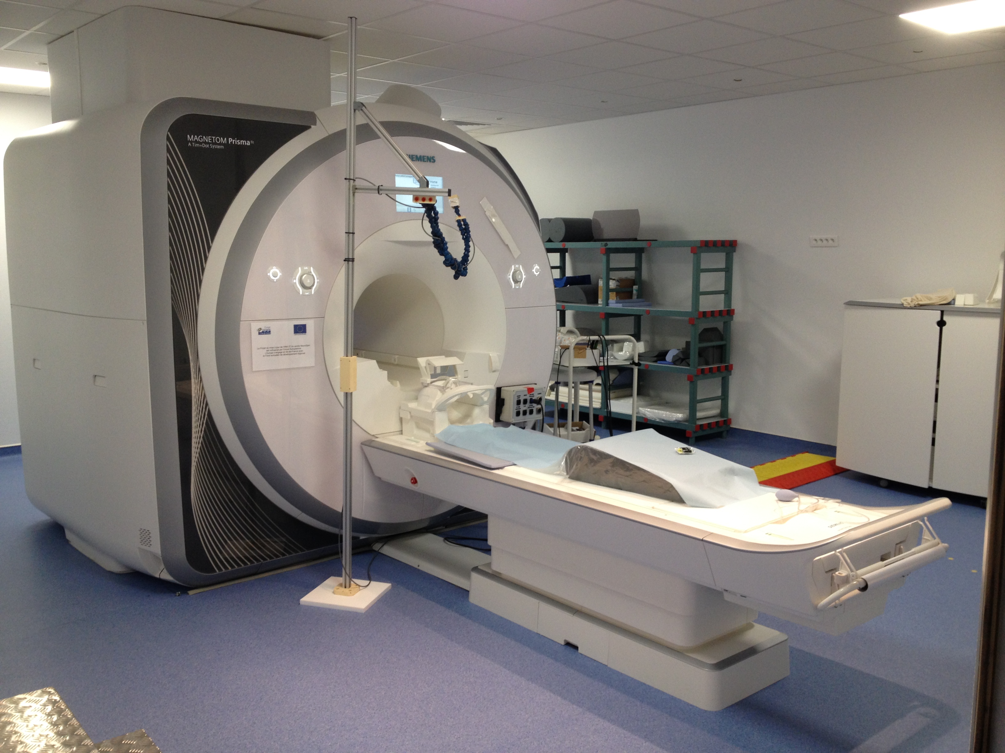 A NeuroSpin, nous disposons d’un imageur Magnetom Prisma Fit de la société Siemens Healthcare, IRM à 3 Tesla. Ce système dispose des caractéristiques techniques répertoriées dans sur la Figure ci-contre. Il est équipé d’une antenne émettrice corps entier, et d’antennes réseaux allant jusqu’à 64 éléments de réception répartis autour de la tête et du cou du sujet (Figure 2). Par défaut, nous proposons l’antenne 64-canaux pour un rapport signal-sur-bruit optimal, mais pour les sujets difficiles (enfants, personnes âgées, grosses têtes), l’usage d’une antenne plus spacieuse à 20-canaux est recommandé.