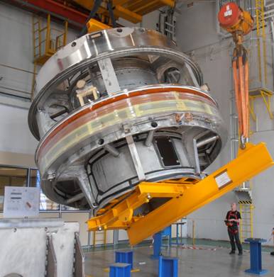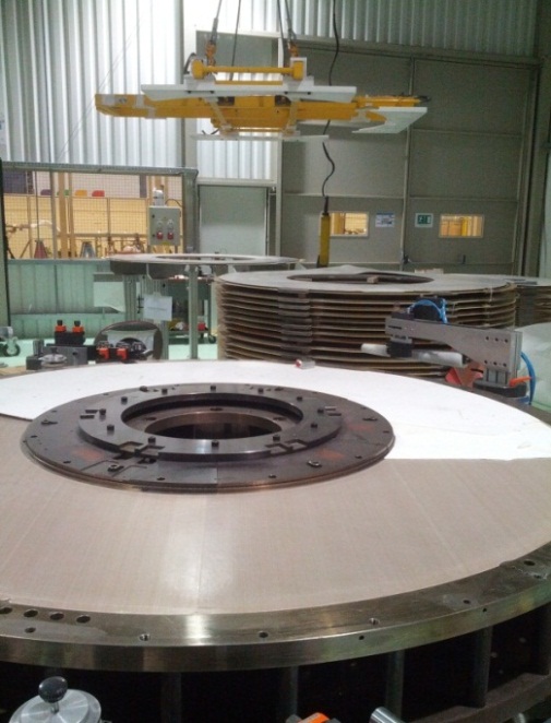 Vue de l'aimant après l'assemblage de la bobine principale et l'ajout de la première bobine de blindage actif. Eté 2014.