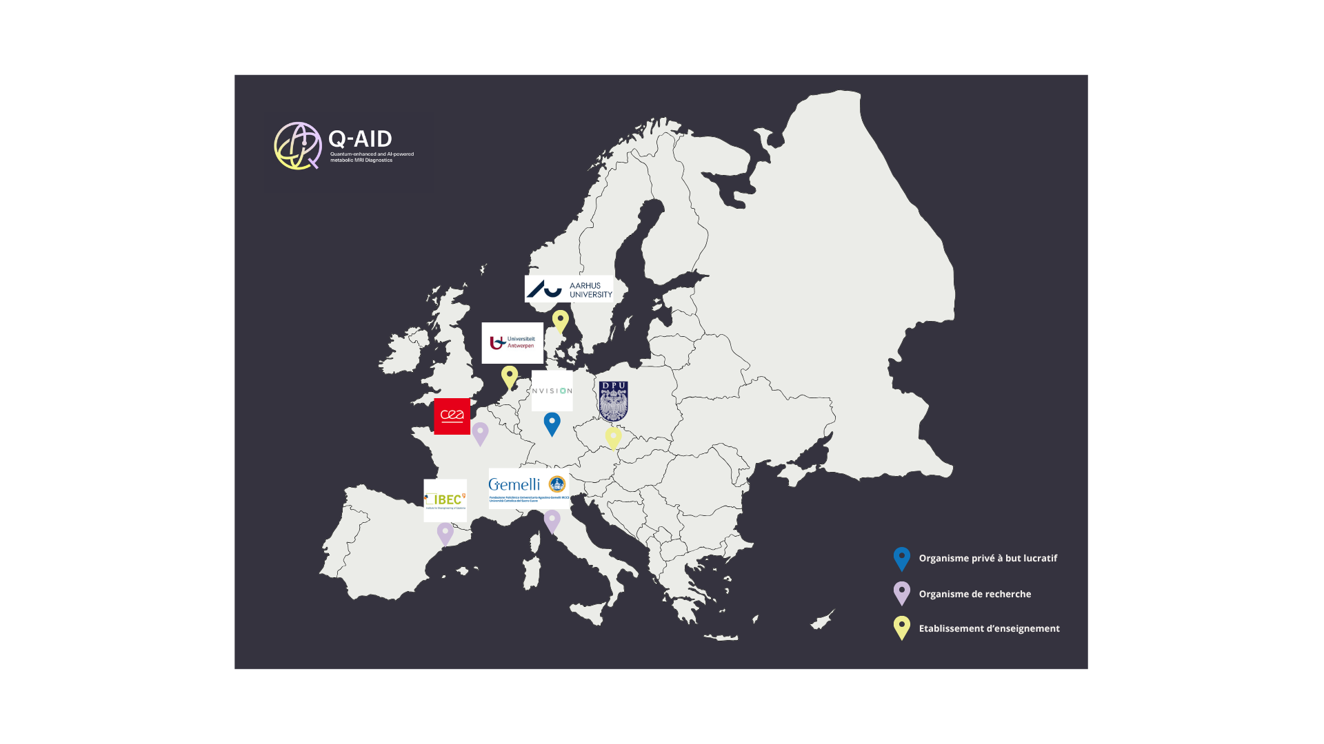 Le consortium regroupe un partenaire industriel, porteur du projet( NVISION Imaging Technologies GMBH), des organismes de recherche (Fondazione Policlinico Universitario Agostino Gemelli, Fundacio Institut De Bioenginyeria De Catalunya, CEA Institut Joliot), ainsi que des universités (Universiteit Antwerpen, Aarhus Universitet, Danube Private University).