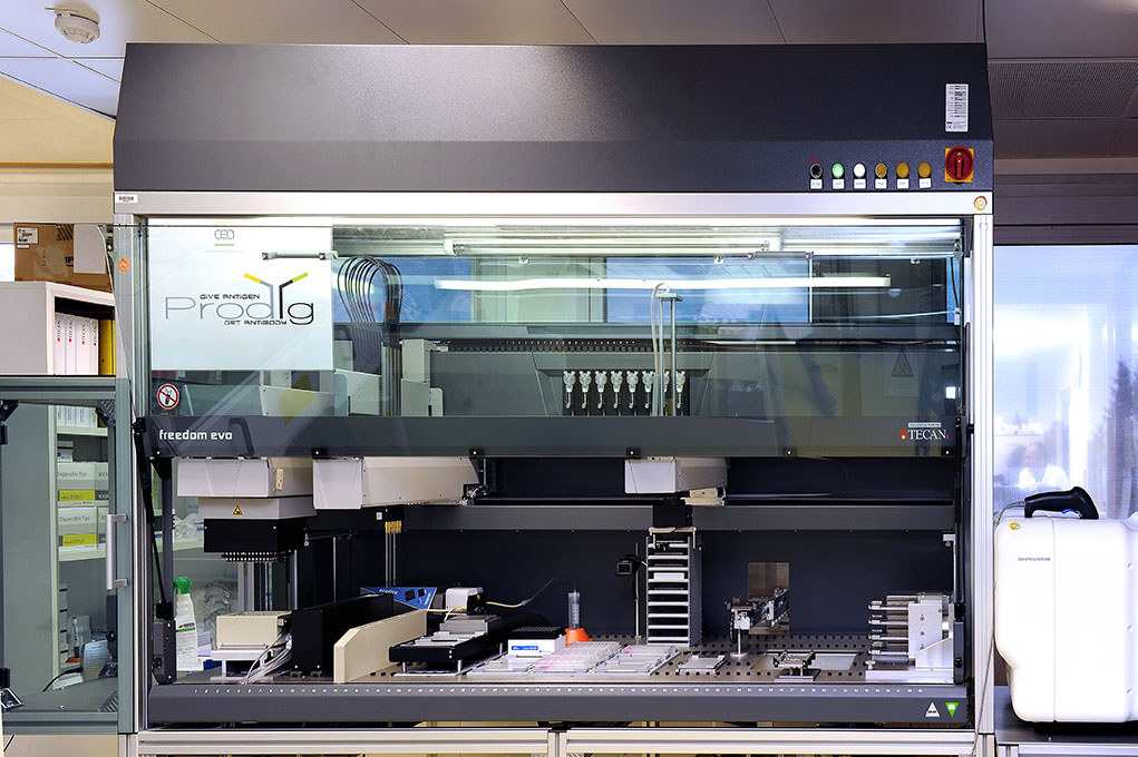 Laboratoire d’Etudes et de Recherche en Immunoanalyse (LERI) qui produit des anticorps polyclonaux et monoclonaux depuis plus de trente ans. En particulier, cet automate réalise les étapes fastidieuses et répétitives du processus telles que le repiquage des cellules, le prélèvement des surnageants et le transfert des hybridomes sélectionnés. La plateforme est hébergée dans les locaux du laboratoire et profite donc de l’ensemble des appareils et matériels présents.