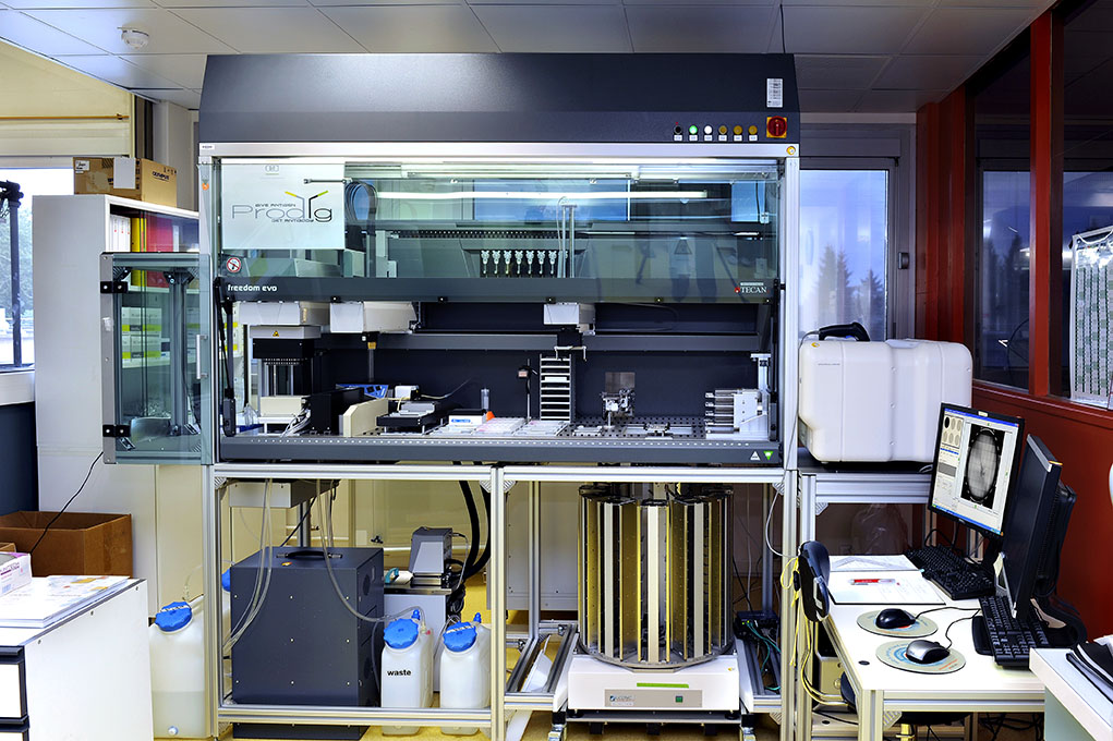 | The High Throughput Screening Platform, based at the molecular labeling and bio-organic chemistry Unit (SCBM), combines the equipment necessary for high throughput biological screening and the preparation of targeted libraries. |