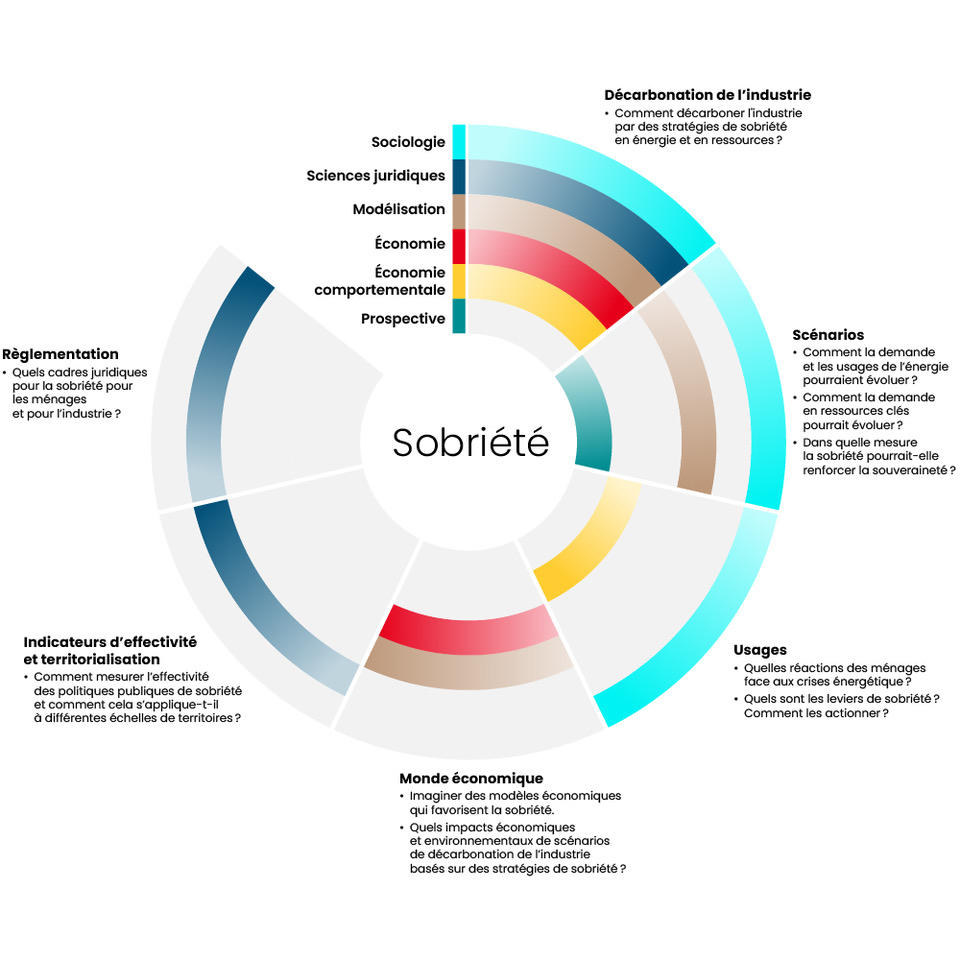 Questions de recherche sur la sobriété étudiées au sein de l'équipe :