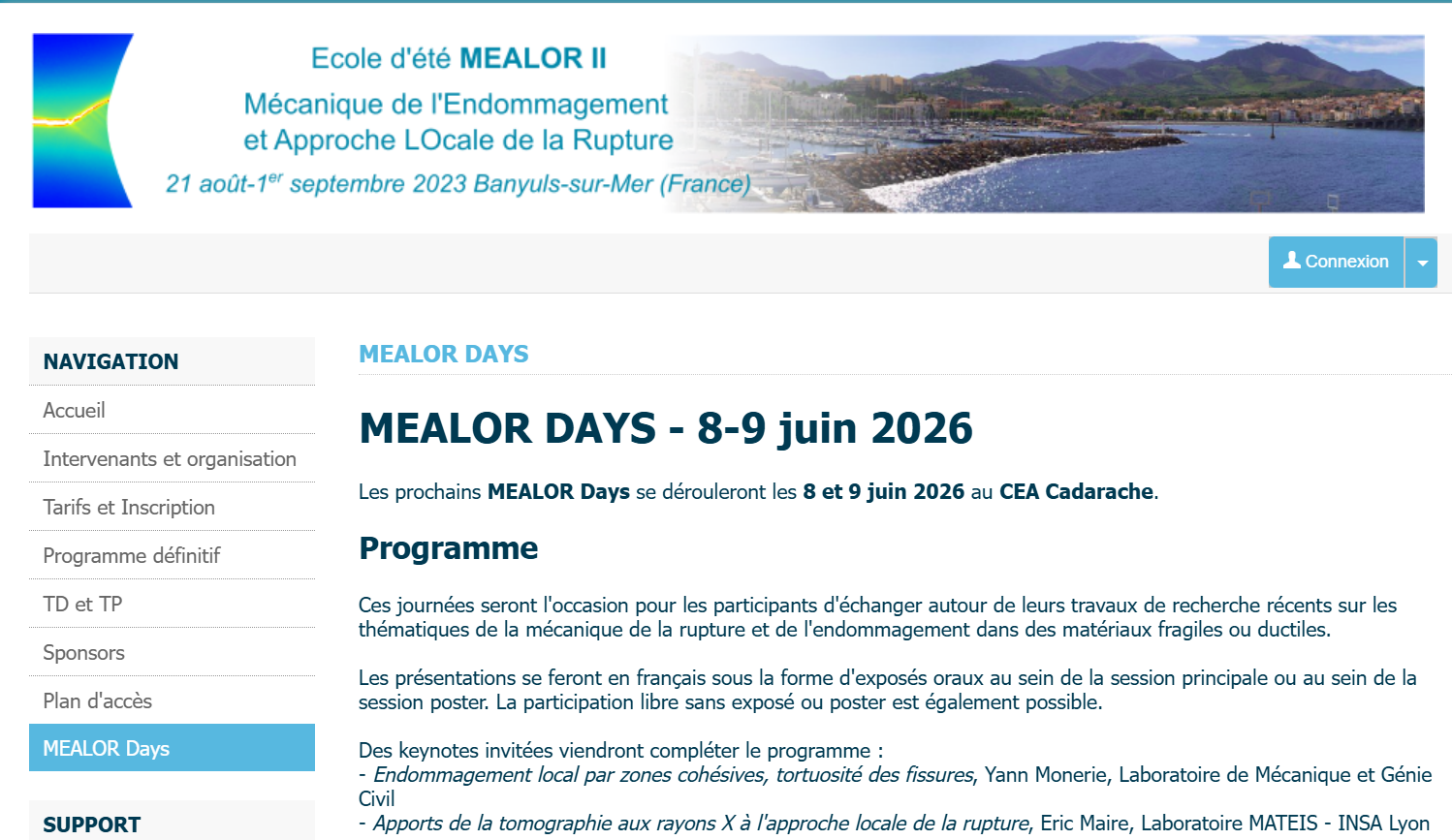 Les Journées MEALOR (Mécanique de l'Endommagement et à l'Approche LOcale de la Rupture) auront lieu à Cadarache (Sud de la France, au nord de Marseille et Aix en Provence)