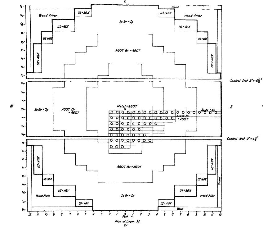 Table listing the various combinations of fuel lumps used in CP-1, from reference E. Fermi, Report CP-413 (1943).