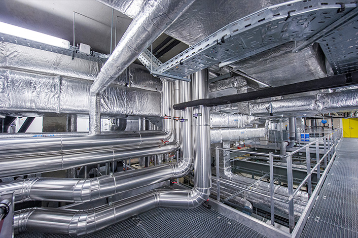 D'imposantes galeries techniques, au sous-sol du bâtiment, permettent le bon fonctionnement de l'installation.