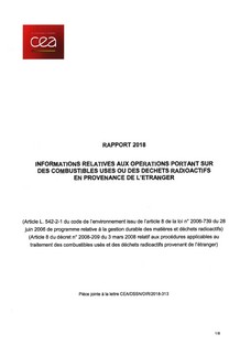 Ce rapport répond aux dispositions de l’article L. 542-2-1 du code de l’environnement, tel qu’issu de la loi n° 2006-739 du 28 juin 2006, par lequel le CEA, en tant qu’exploitant d’installations de traitement et de recherche, doit établir, tenir à jour et mettre à la disposition des autorités de contrôle, les informations relatives aux opérations portant sur des combustibles usés et des déchets radioactifs en provenance de l’étranger.