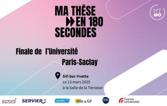 Le 13 mars prochain, la salle de la Terrasse à Gif-sur-Yvette accueillera la finale locale de l’Université Paris-Saclay pour le concours Ma Thèse en 180 secondes (MT180).