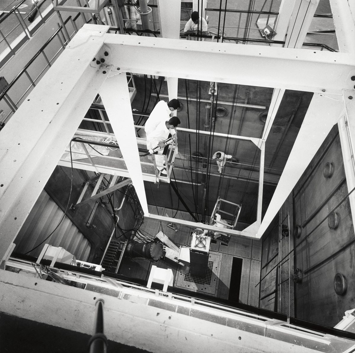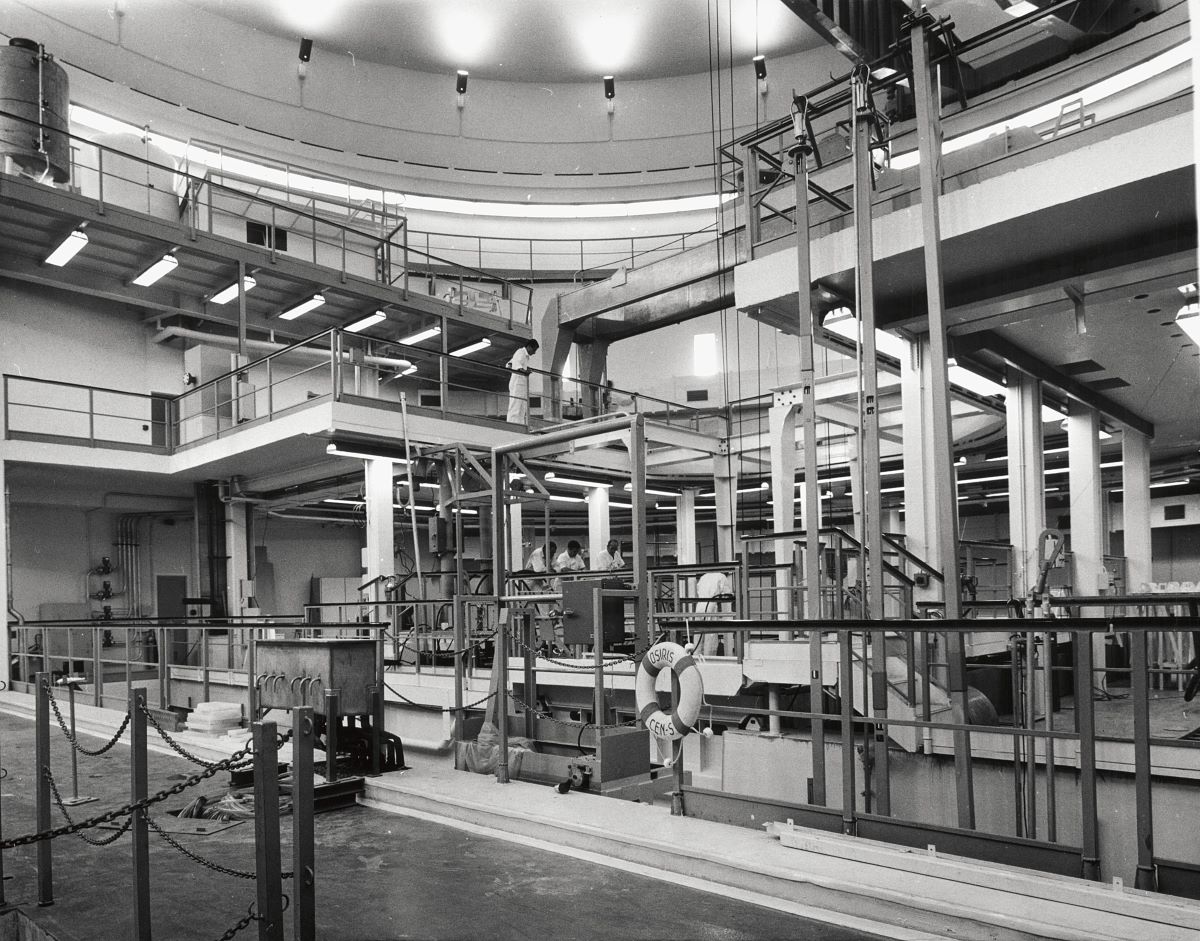 Vue d'ensemble de la piscine, du canal et des aires. Photo prise en juin 1966. © P.Jahan/CEA